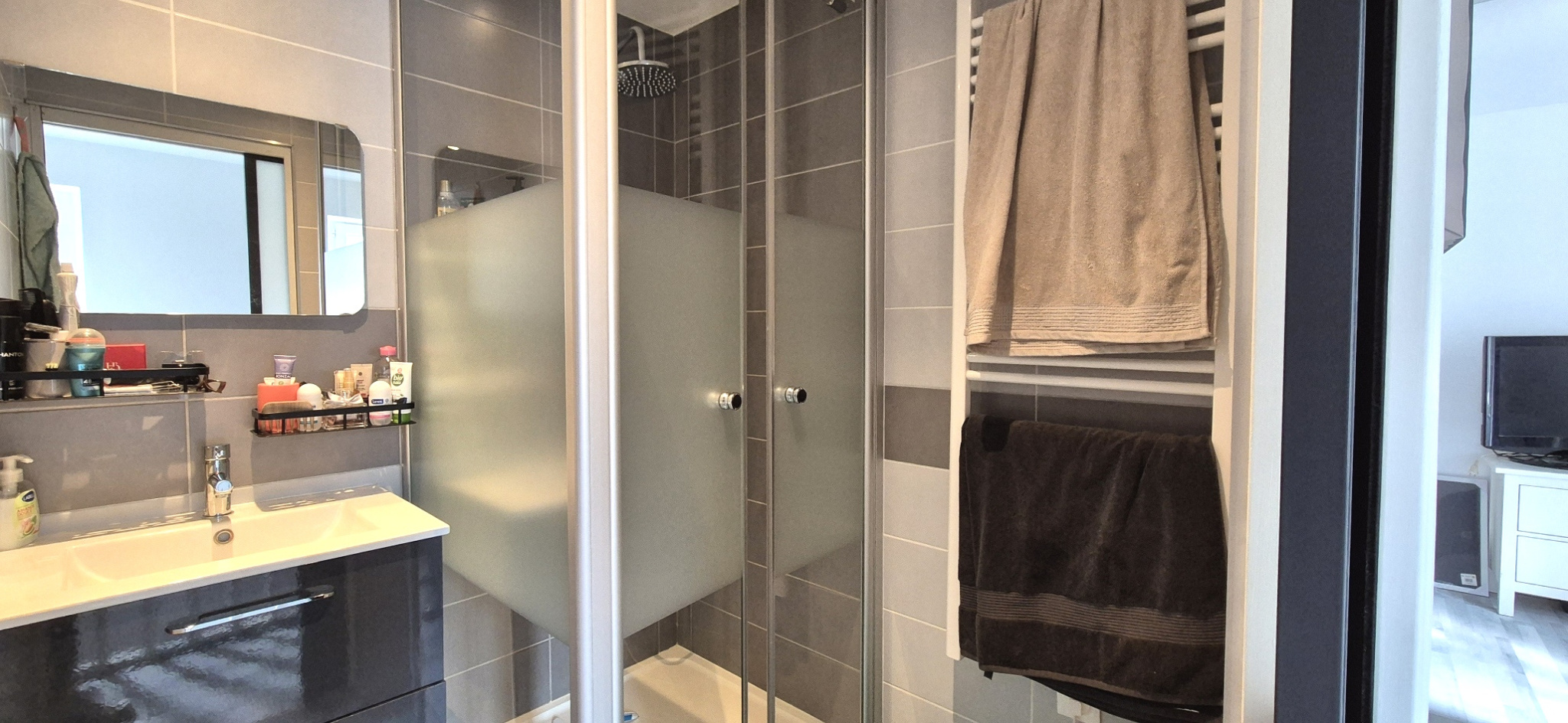 L’entrée privative du logement vous permet de profiter d’un espace extérieur de 45 M2 environ. Une place de parking attitrée vient compléter les prestations de cet appartement qui conviendra tout autant à une personne seule qu’à un jeune couple envisageant de fonder une famille ou déjà parent.