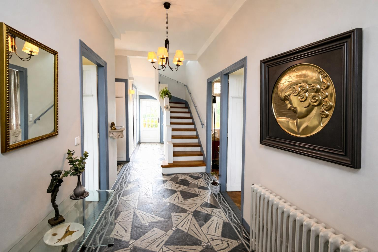 Cette rare demeure des années 30 séduit par son élégance Art Déco, son charme intemporel et son atmosphère balnéaire typique des maisons de villégiature de l'époque. L'éntrée sur mosaïque Odorico illustre pleinement le savoir-faire décoratif des années 30. Elle dessert un salon/bibliothèque avec terrasse, une double réception sublimée par un bow-window et tournée vers le jardin, une cuisine aménagée et équipée accédant à la terrasse.. Le premier étage est occupé par trois chambres, une salle de bains et une lingerie. Un grand palier, deux/ trois chambres et une salle d'eau se partagent le second étage. En sous-sol vous profiterez d'un garage, d'une cave et chaufferie. Un garage indépendant de 27m² vient en bonus..Un magnifique jardin arboré parfait le tout.