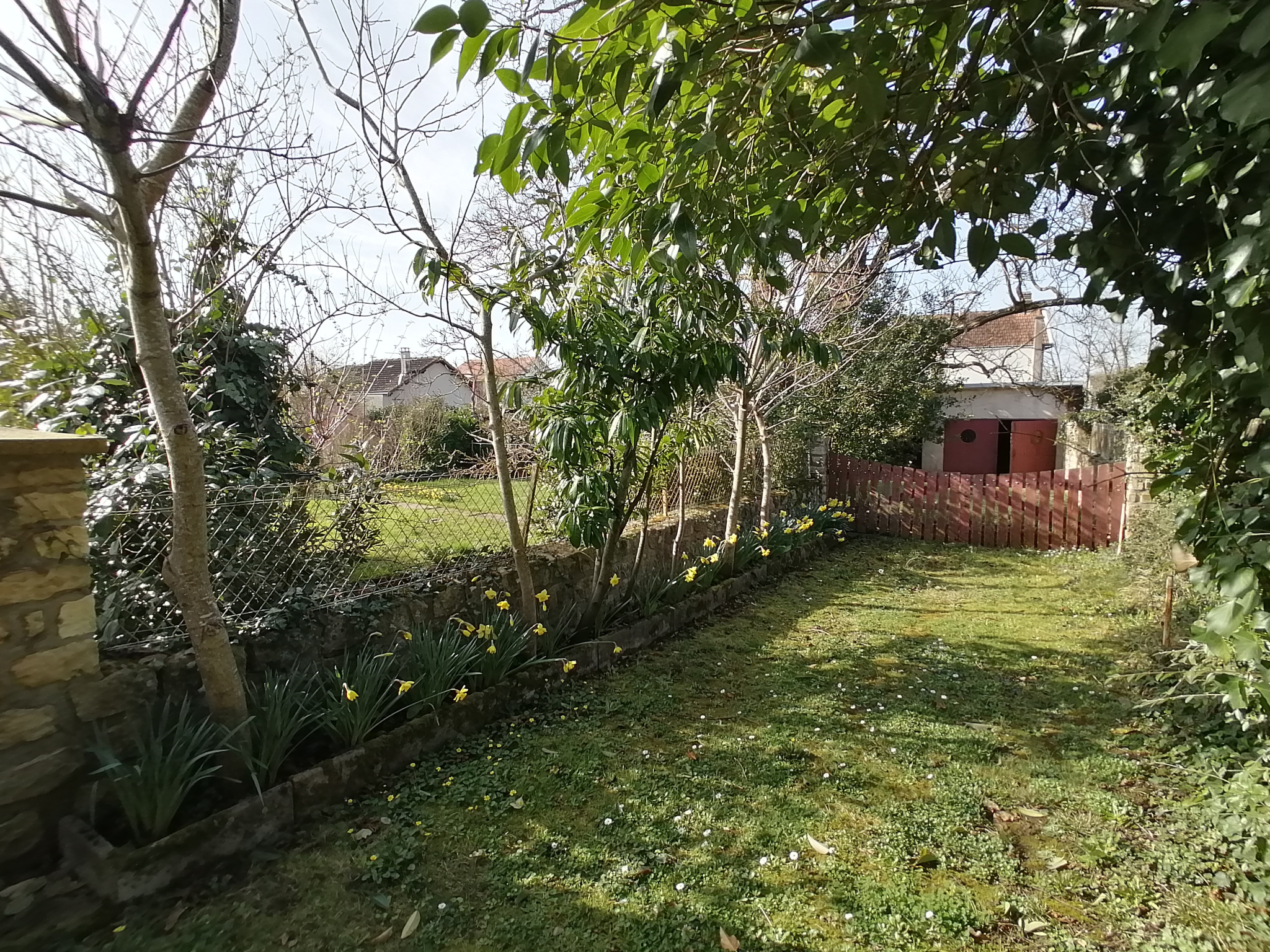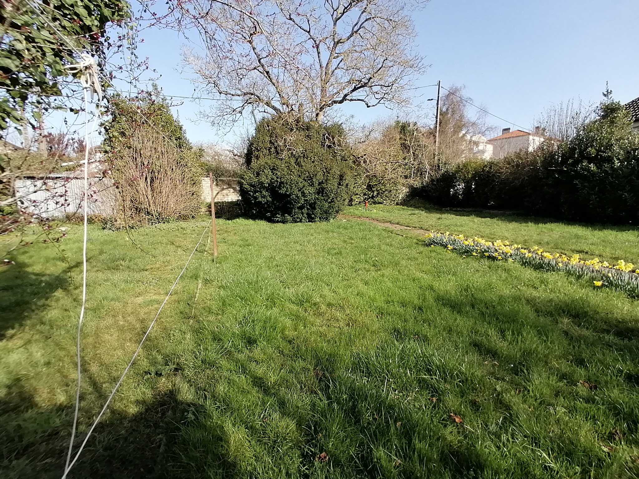 A deux minutes à pied de l'hôtel de ville et du Leclerc, joli terrain borné, cloturé, viabilisé en eau et au tout à l'égout, libre de tout constructeur.