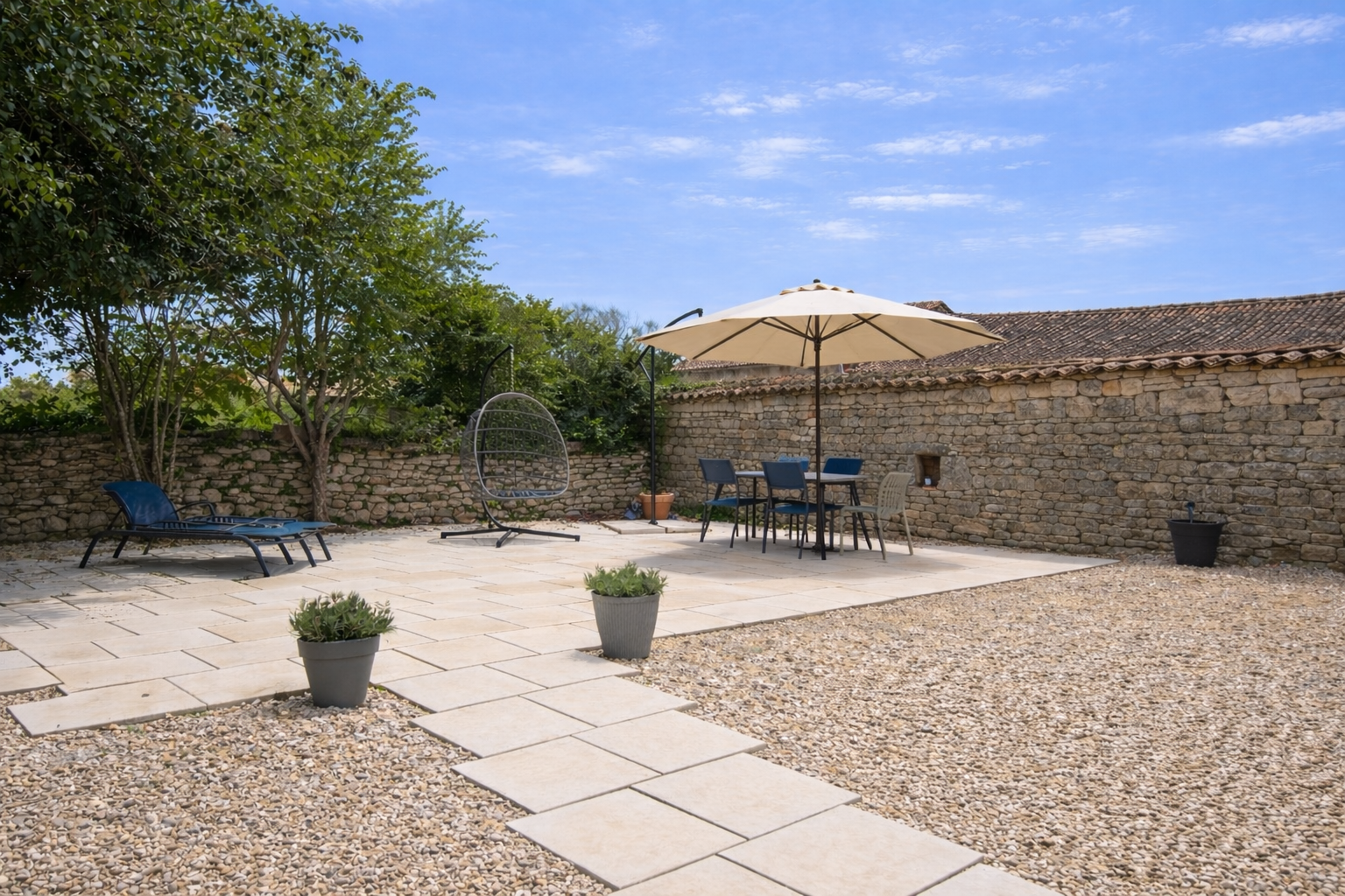 À l’extérieur, vous profiterez d’un jardin agréable et facile d’entretien, avec un espace ombragé idéal pour se détendre ou recevoir.