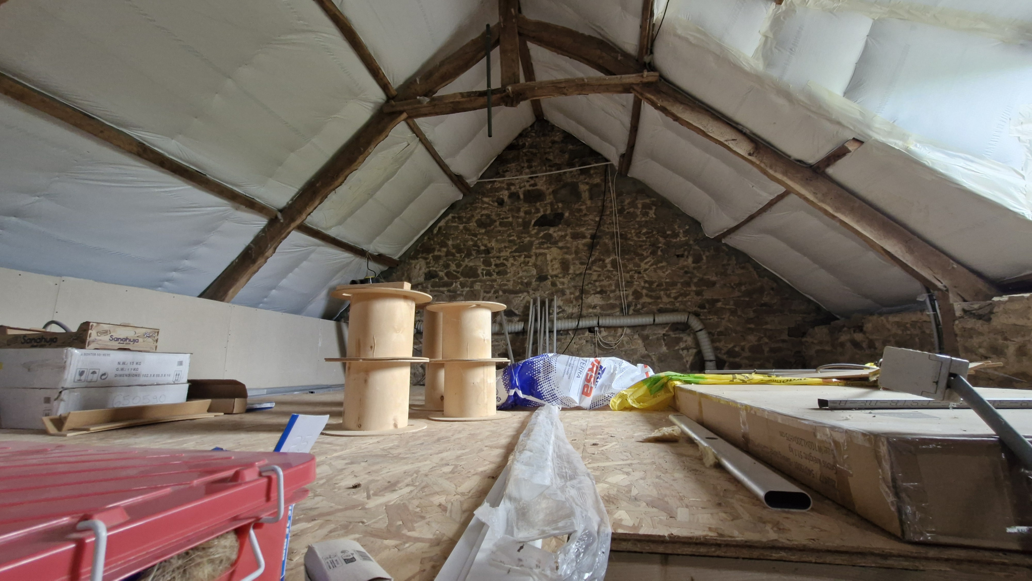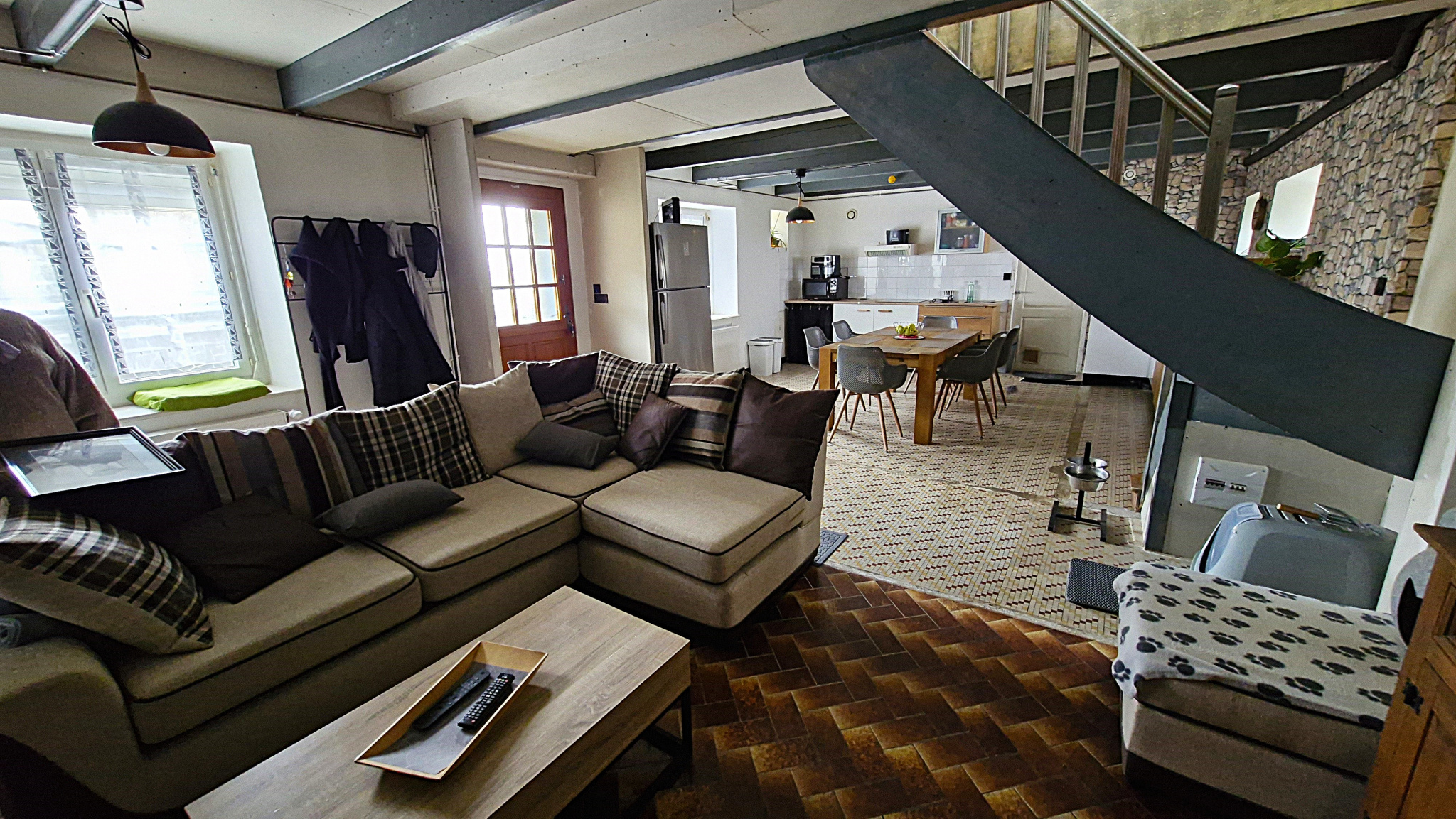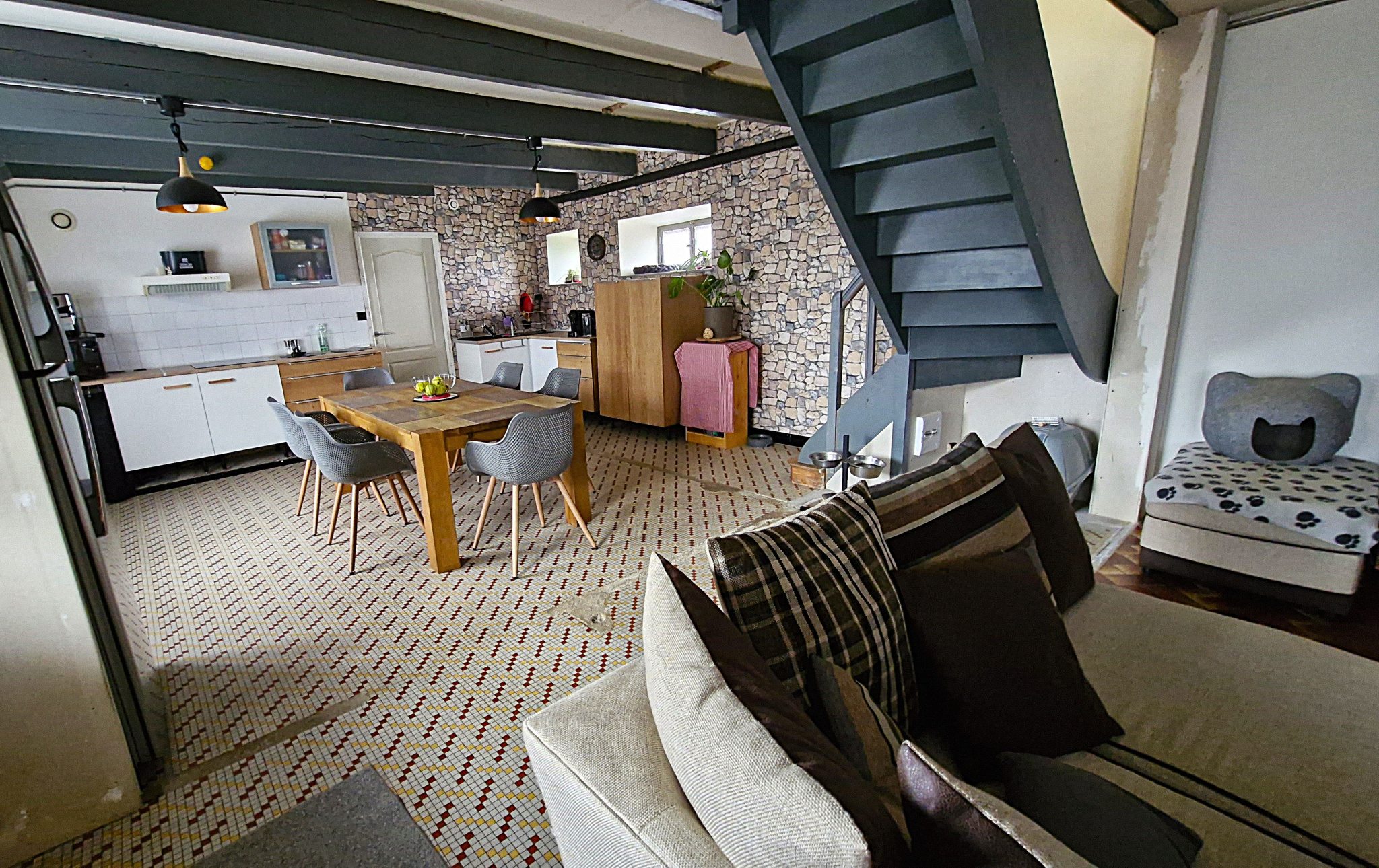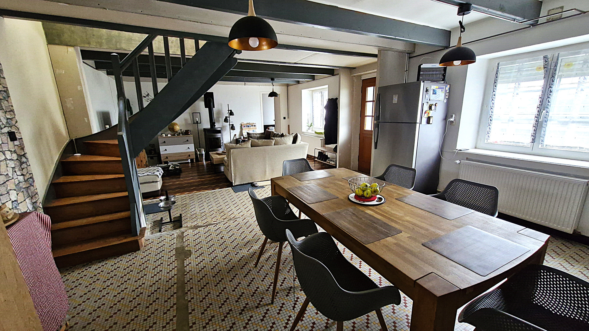 La maison propose actuellement une surface habitable d'environ 109m², comprenant une belle pièce de vie lumineuse d'neviron 49m² avec son poele à bois, de 3 chambres dont une spacieuse de rez-de-chaussée d'environ 20m², une salle d'eau à l'étage et Wc au Rdc. Un véritable atout : 55,4 m² supplémenatires à configurer, déjà partiellement rénovés, laissant libre cours à vos projets (agrandissement, gîte, espace professionnel...)