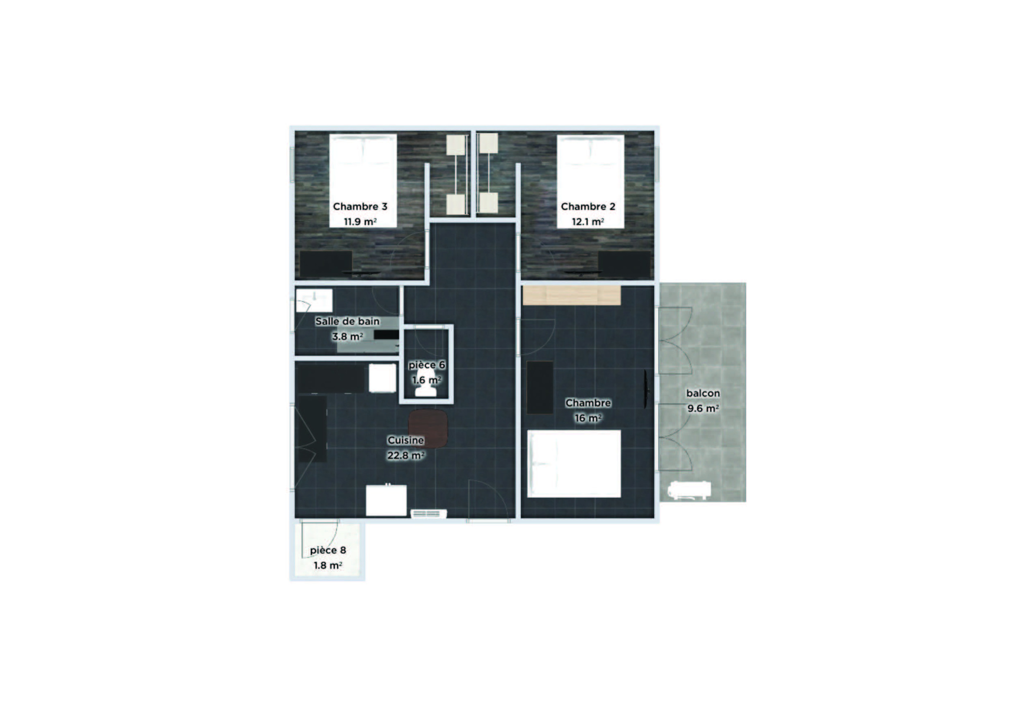 3 chambres louées :