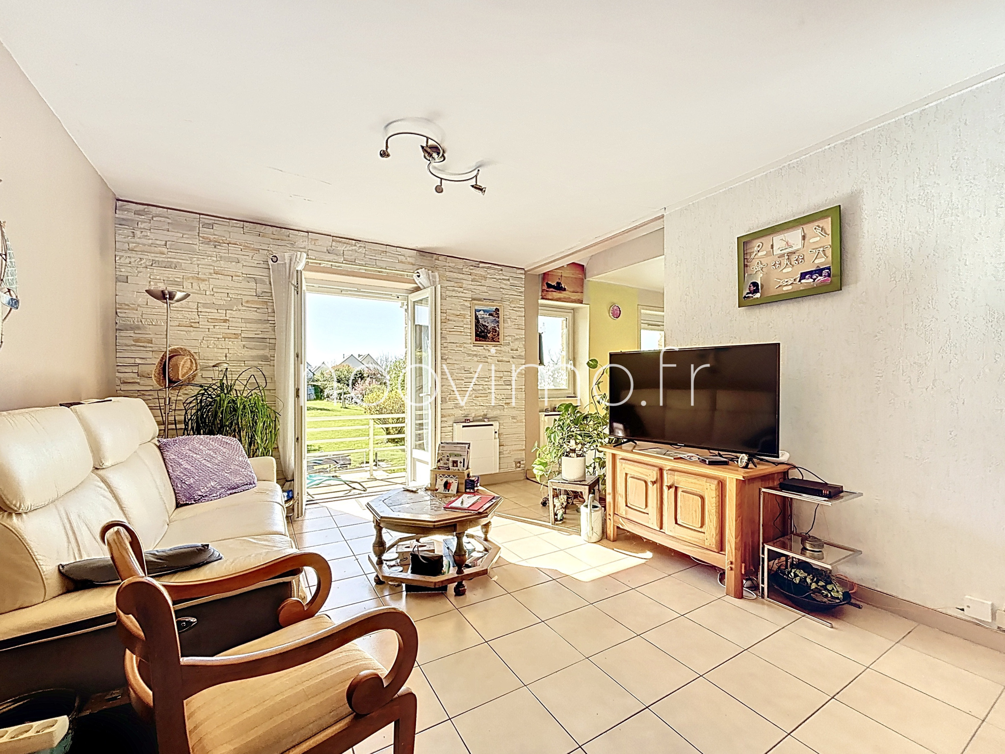 . Habitation principale : Séjour lumineux traversant avec poele à bois, cuisine aménagée, les 2 ouvrants sur la terrasse plein sud, 3 chambres, bureau, salle de bain, grenier ;