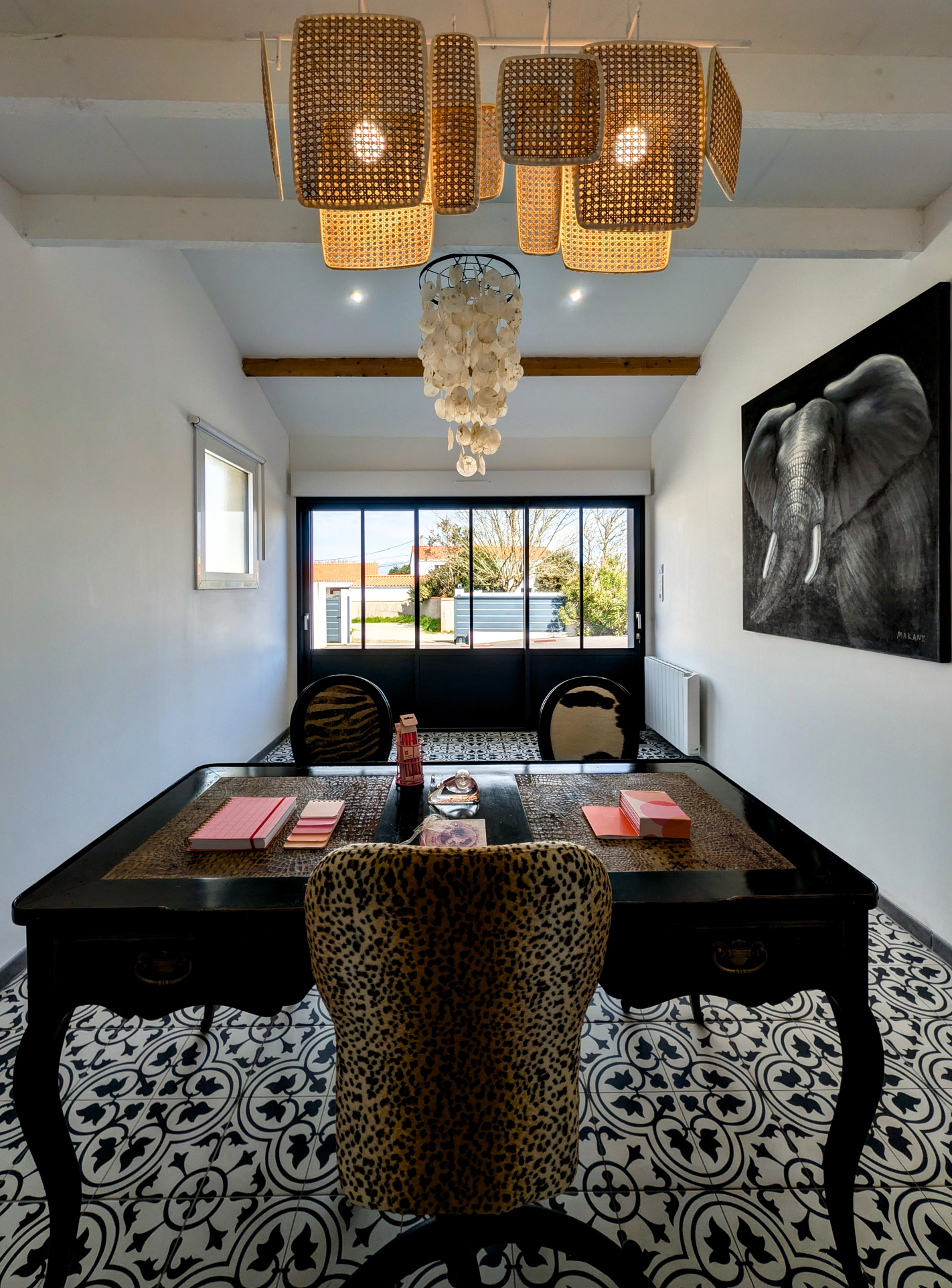 Bureau dédié avec rangements.