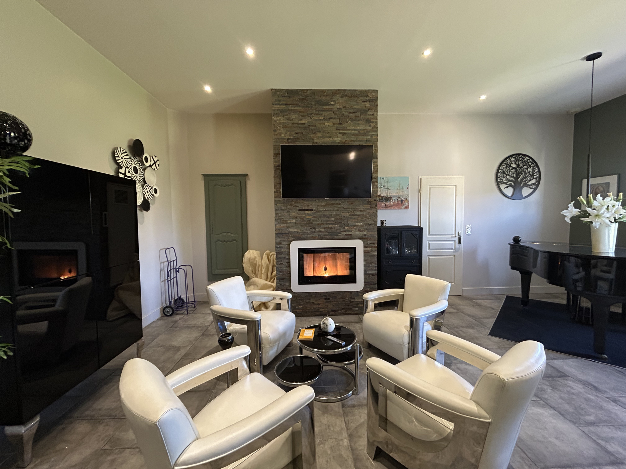 À l’extérieur, le domaine bénéficie d’un espace de vie remarquable avec une piscine chauffée, traitée au brome et équipée d’un robot. Des robots tondeuses assurent l’entretien du terrain pour un confort optimal.