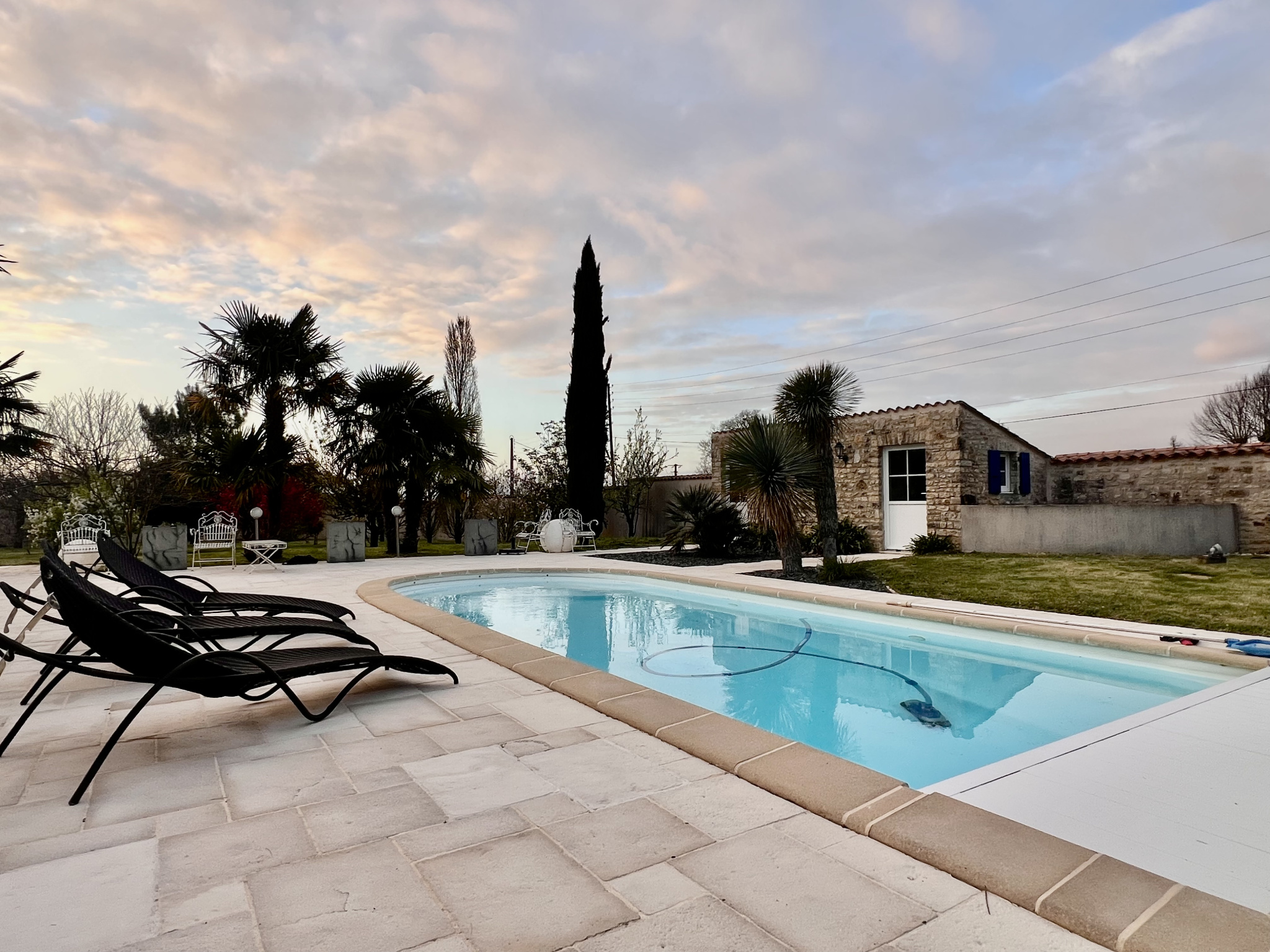 Les dépendances complètent parfaitement l’ensemble avec un garage équipé d’un portail motorisé, un atelier de peinture avec douche, ainsi qu’un espace dédié à la piscine comprenant une douche, un WC et une chambre, parfait pour accueillir famille ou amis.