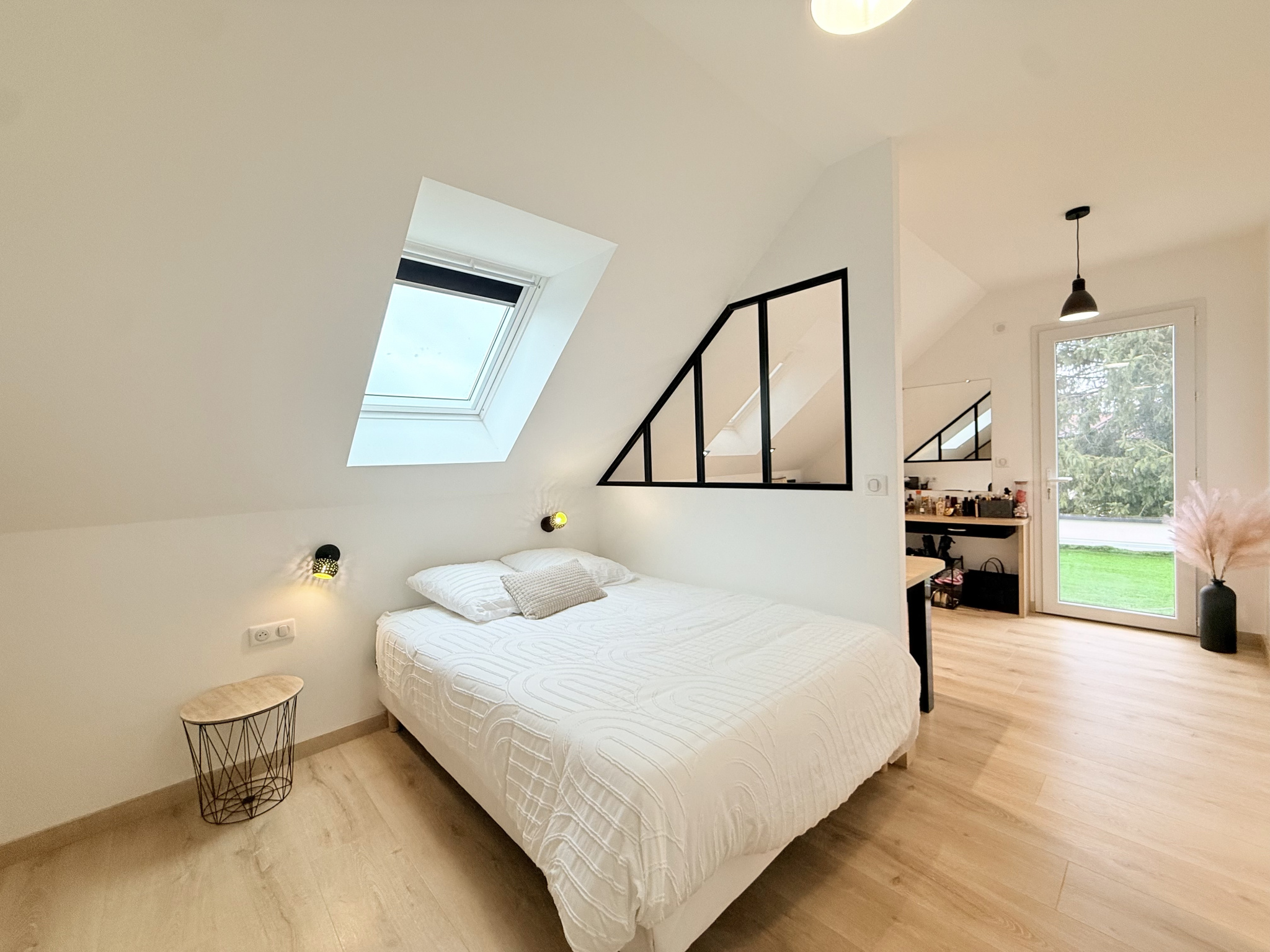 À l’étage, une pièce palière desservant trois grandes chambres avec dressing, ainsi qu’une salle d’eau équipée de trois lavabos et d’un WC. Vous bénéficierez également d'une climatisation réversible assurant un confort optimal en toute saison.